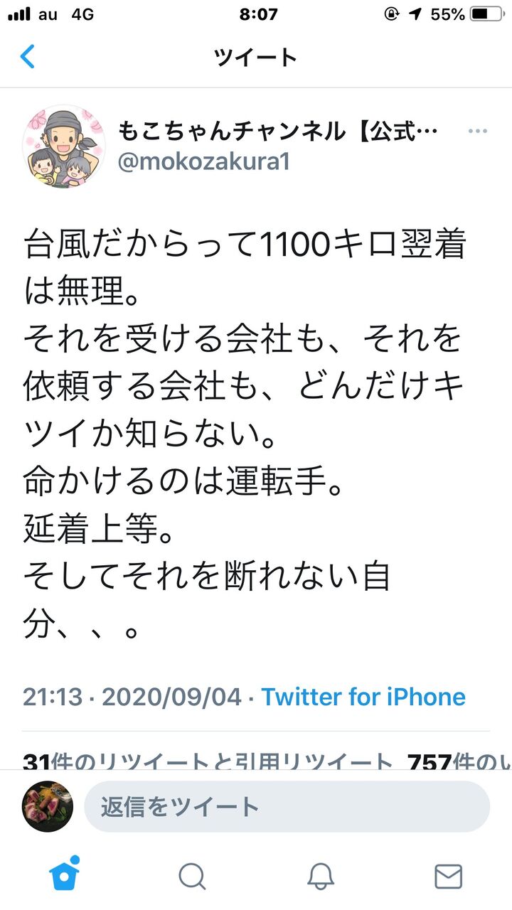 【悲報】トラック運転手「台風の中1100km翌日着は無理!延着上等!」→ 衝撃の末路wwwwwww 2020/9/19 なんJ 【悲報】トラック運転手「台風の中1100km翌日着は無理!延着上等!」→同業者に凸され退職1: 風吹けば名無し 2020/09/19(土) 09:43:18.47 ID:88+4dk4Z0 →同じトラックドライバーから批判殺到、会社に電凸されて、解雇に追い込まれる 続きを読む