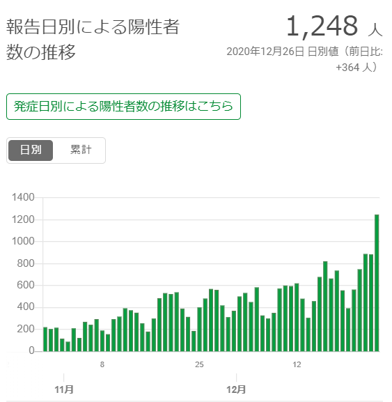2020年12月26日 日別値(前日比: +364 人)