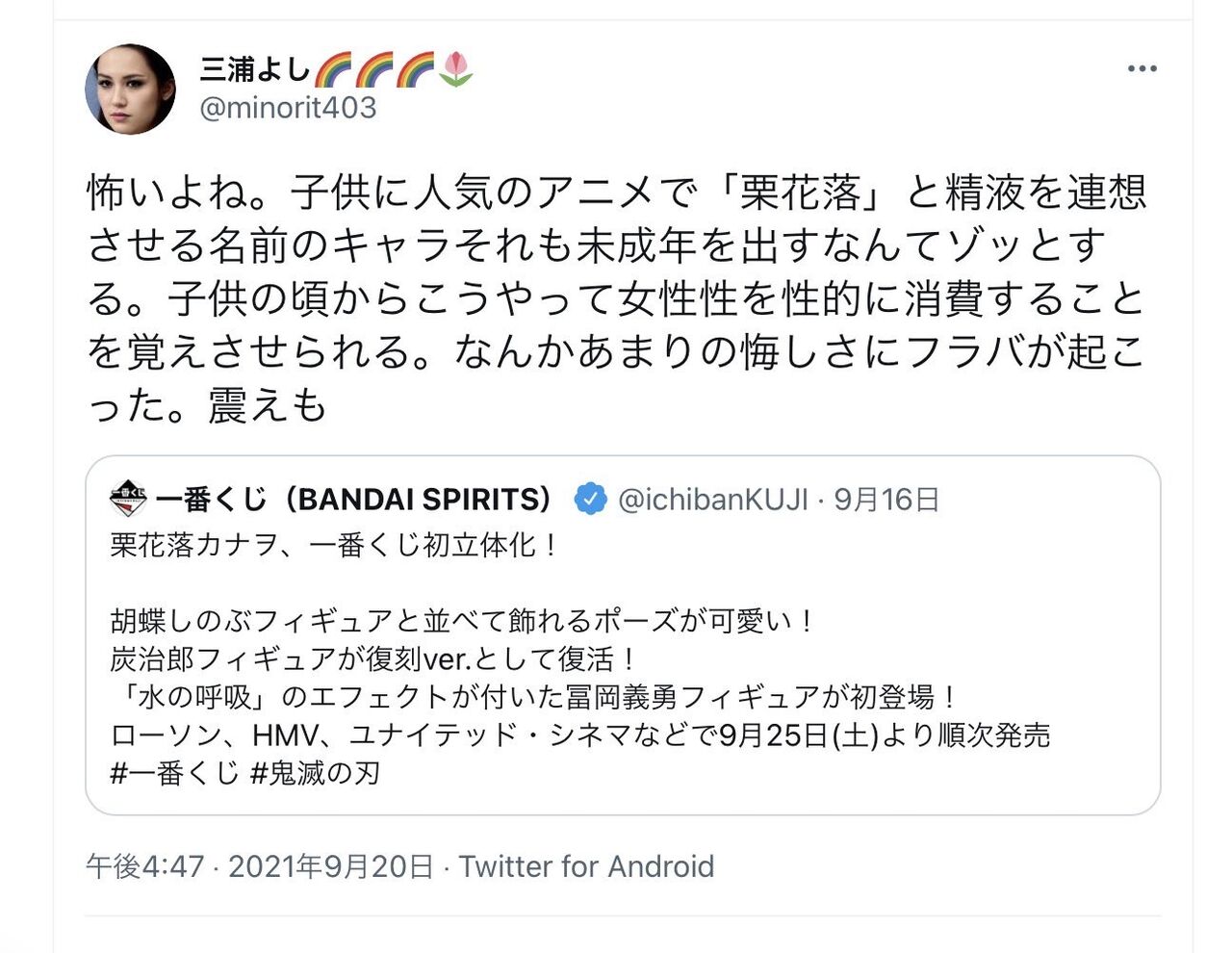 フェミさん「鬼滅の刃をみてゾッとして悔しくて震えてる」
