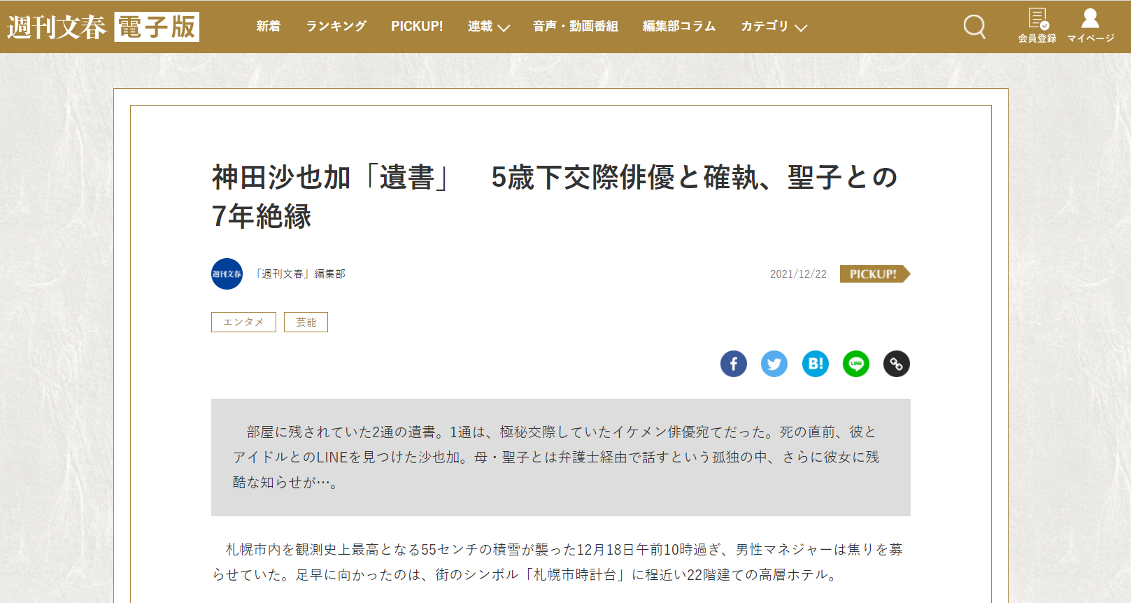 注目記事【画像あり】文春、神田沙也加の転落死現場を載せてしまう → ヤバ過ぎた・・・