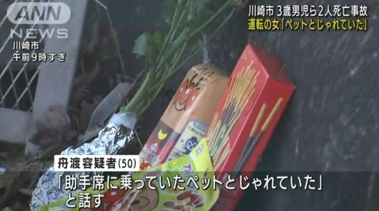 川崎市できのう、3歳の男の子ら2人が乗用車にはねられ死亡した事故で、乗用車を運転していて逮捕された50歳の女が助手席のペットとじゃれていたなどと話していることがわかった。