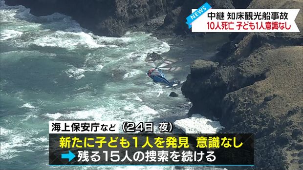 関連記事北海道の知床半島の沖合で消息を絶った観光船の捜索で、24日に救助され、死亡が確認された11人のうち3人の身元が判明しました。