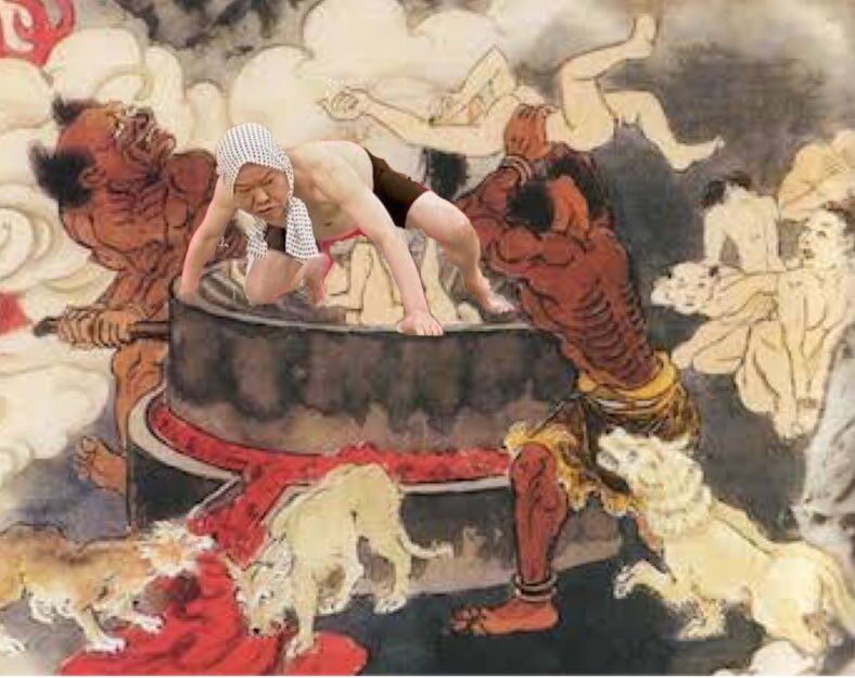 上島竜兵さん、地獄で鬼を相手に熱湯風呂を披露