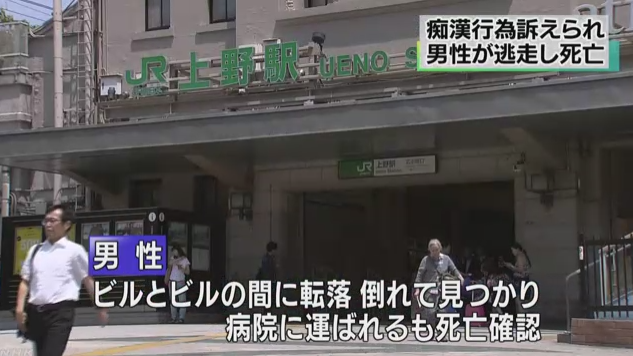 【上野駅】男がビルから転落して死亡…痴漢をしたと女性に訴えられ電車から降ろされた後に…